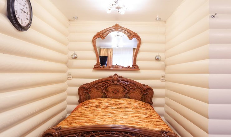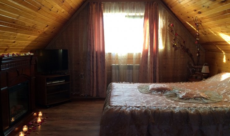 В коттедже: диван, зеркало, кровать двуспальная, прикроватные тумбочки, стол, стулья, шкаф, мини-кухня, кондиционер, микроволновая печь, мини-холодильник, набор посуды, сейф, телевизор ЖК, электрочайник