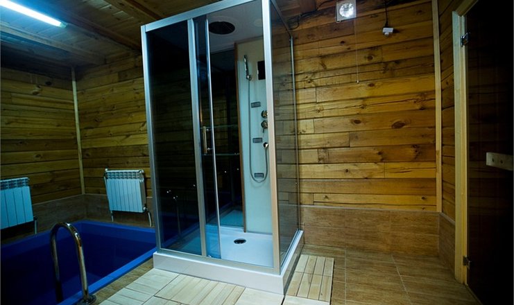 Санузел: сауна: и купель, с душем, тапочки, туалетные принадлежности, фен, халат