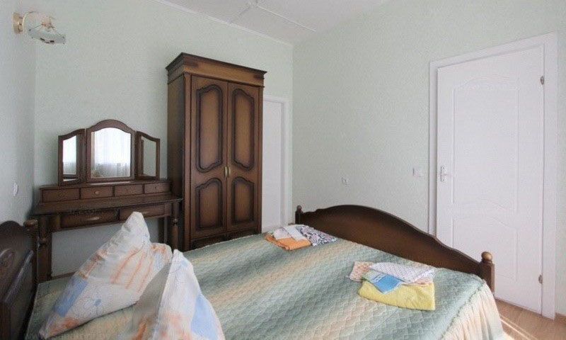 В номере: кровати односпальные, прикроватные тумбочки, стол, стулья, шкаф, набор посуды, телевизор, холодильник