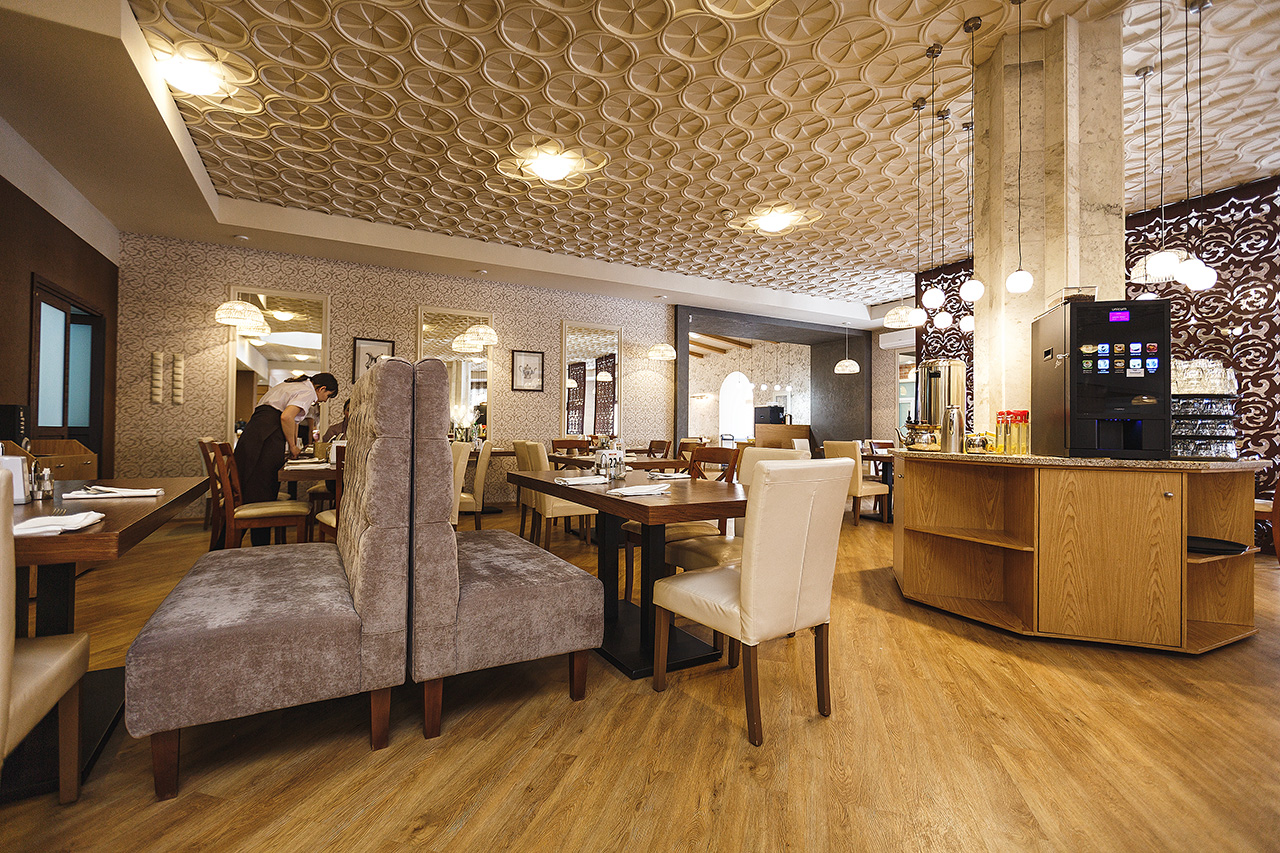 принимает гостей, проживающих в номерах категории "Люкс". Здесь отдыхающим предлагается трехразовое питание по системе "Шведский стол"+ заказное меню. Большое разнообразие блюд, изысканный интерьер и ресторанная подача удивят даже самых взыскательных постояльцев. Процесс питания организован в две смены: 1 смена 2 сменаЗавтрак 07:30 - 08:30 Завтрак 07:30 - 08:30 Обед 12:40 - 13:40 Обед 12:40 - 13:40 Ужин 17:50 - 18:40 Ужин 17:50 - 18:40 |