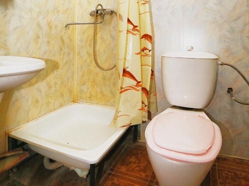Санузел: с душем, раковиной, унитазом и полотенцесушителем